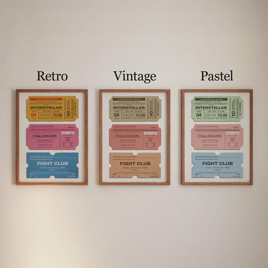 We turn your favourite memories into beautifully crafted prints that are subtle, stylish, and full of meaning. Whether it’s a concert that gave you goosebumps, a film that stuck with you, or a trip you never wanted to end - our designs help you bring those moments into your everyday space. A personal way to keep the memories alive - not just in your camera roll.