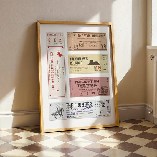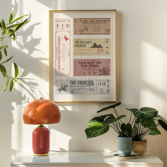 Shop the Digital Ticket Stub Posters Collection – These unique posters mimic worn vintage arcade, cinema, concert, and sports tickets. Download high-quality files to print at home. Some designs include fun quotes, while others are custom-made to tell your story. Add retro flair to your walls or gift them to someone special.