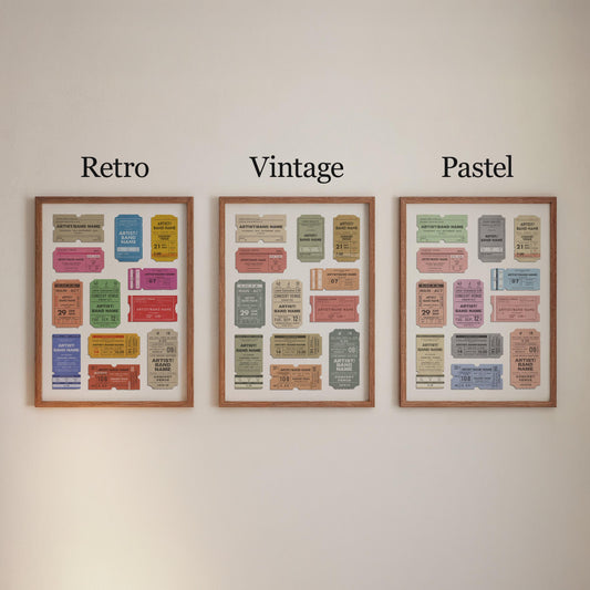 Shop The Ticket Stub Collection – These prints feature retro layouts and realistic event details. Each piece looks like a classic concert, arcade, cinema, or sports ticket. Some include fun phrases and sayings, making them great gifts for nostalgia lovers or anyone after unique art.