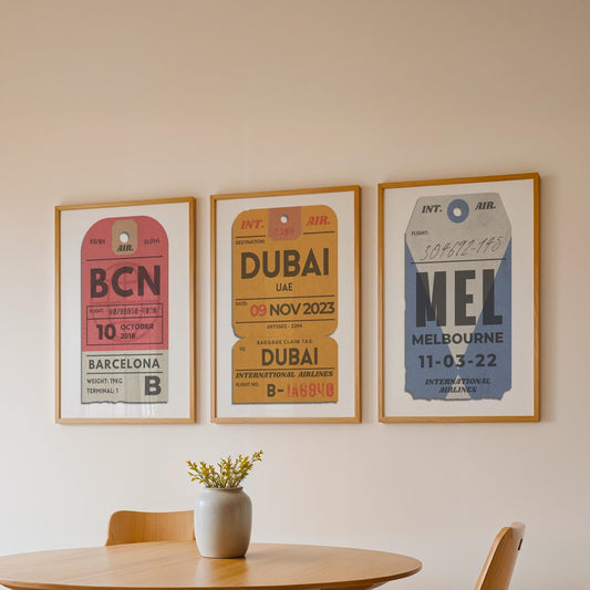 Set mit 3 benutzerdefinierten Gepäckanhänger-Postern